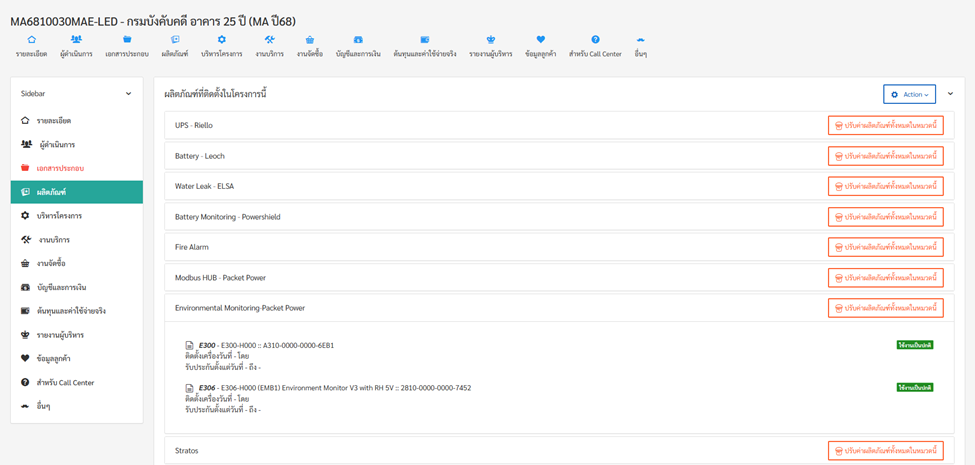 - เช็คว่าในโครงการนั้นต้องมีอุปกรณ์ Packet Power อยู่ครบทุก S/N ที่จะส่งอลาม