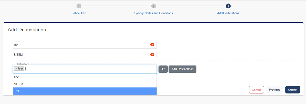 - กดเลื่อนไปอันที่ 3 Add Destinations แล้วเพิ่มชื่อของอีเมล์ที่เราตั้งไว้ กด Add Destinations แล้วกด Submit