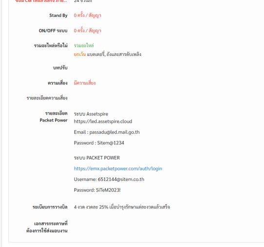 - ในหน้ารายละเอียดโครงการ ต้องมีรายละเอียด Packet Power
