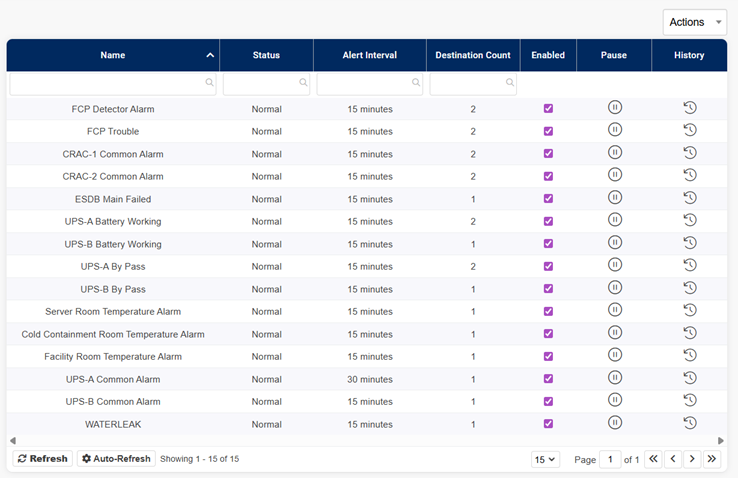 - เมื่อเกิดอลาม ให้ไปที่หน้า Node Alerts เช็ค Status ว่าเกิด ALERT! จริงหรือไม่ และ Destination Count ไม่ควรเป็น 0